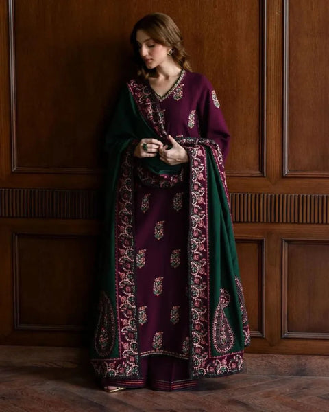 Its unstitched/Stitched , Experience effortless elegance with our Luxury Karandi 3-Piece Ensemble, featuring an intricately embroidered shirt, a matching shawl, and tailored bottoms. Made from premium Karandi fabric, it offers the perfect balance of warmth, comfort, and timeless style—ideal for winter occasions.